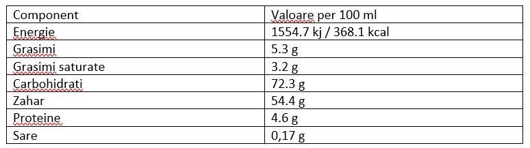 Ingrediente: zahar din trestie, cacao 22/24 (23,5%). amidon de porumb, arome, sare, agent antiaglomerant: E34(iii).