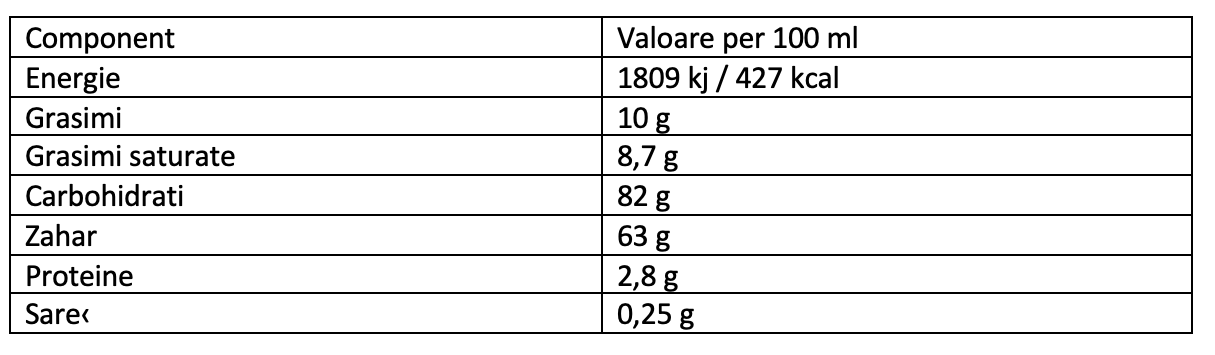 Ingrediente: zahăr, cremă (sirop de glucoză, ulei vegetal de nucă de cocos rafinat, proteine din LAPTE, stabilizator: E340ii, E452i; emulsifiant: E471; agent fluidizant: E341iii), maltodextrină, extract de ceai (4.6%), proteine din LAPTE, arome, ghimbir, scorțișoară, iarbă de lămâie, cardamom, cuișoare.