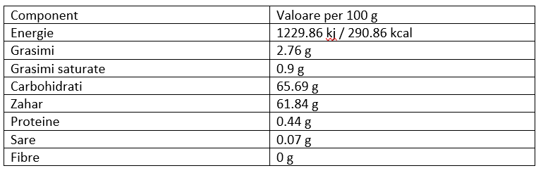 Ingrediente: Zahăr, sirop de glucoză, lapte de cocos (15%), apă, lapte condensat, suc concentrat de lămâie, arome, cocos, agent de ingrosare: E415 – E466 – E473; conservanți: E202 – E211.