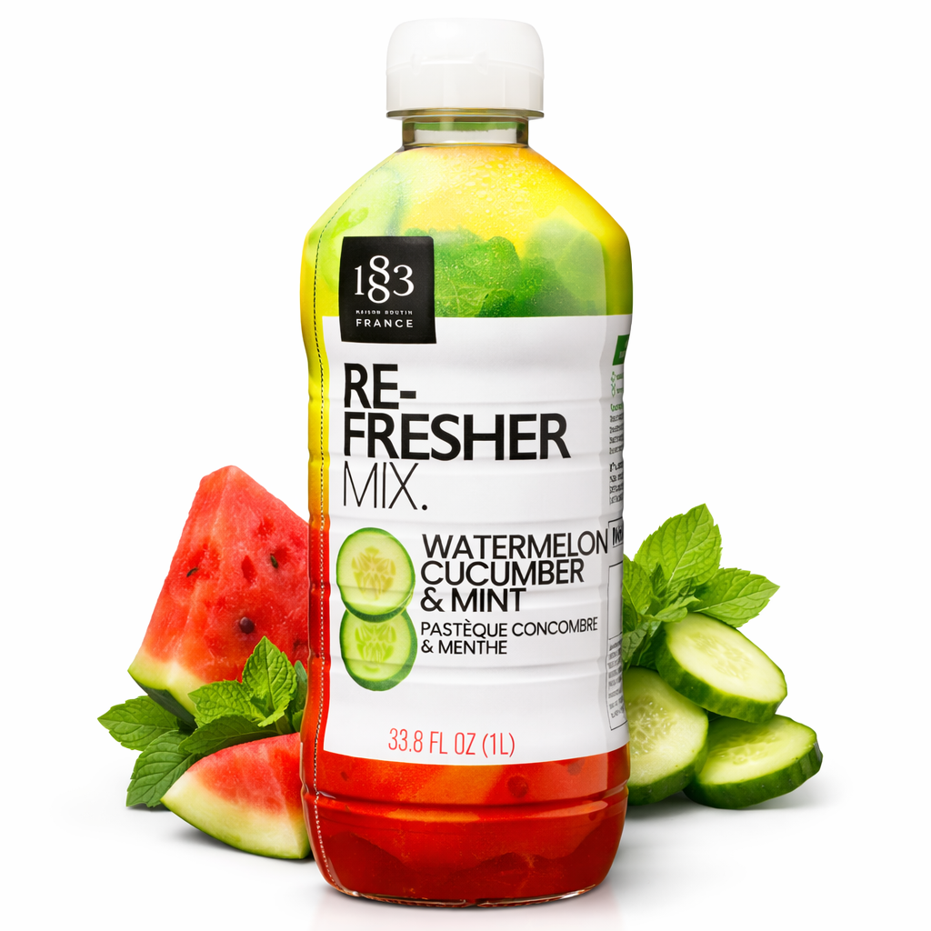 Revitalizează-ți meniul de băuturi cu aromele fresh și răcoritoare, inspirate de stilul spa, ale 1883 Watermelon, Cucumber & Mint Refresher Mix. Această rețetă sofisticată surprinde esența unei băuturi tradiționale „Agua Fresca”, combinând pepenele roșu suculent cu prospețimea castravetelui și un finish revigorant de mentă.