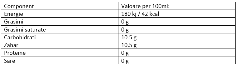 Ingrediente: apă carbogazoasă, zahăr din trestie de zahăr, sucuri de fructe (suc de mere fermentat nealcoolic 2%, suc de lămâie 1%) din concentrat, extract natural de nucă de cola, cofeină naturală, arome naturale, colorant natural: malț de orz / conține gluten.