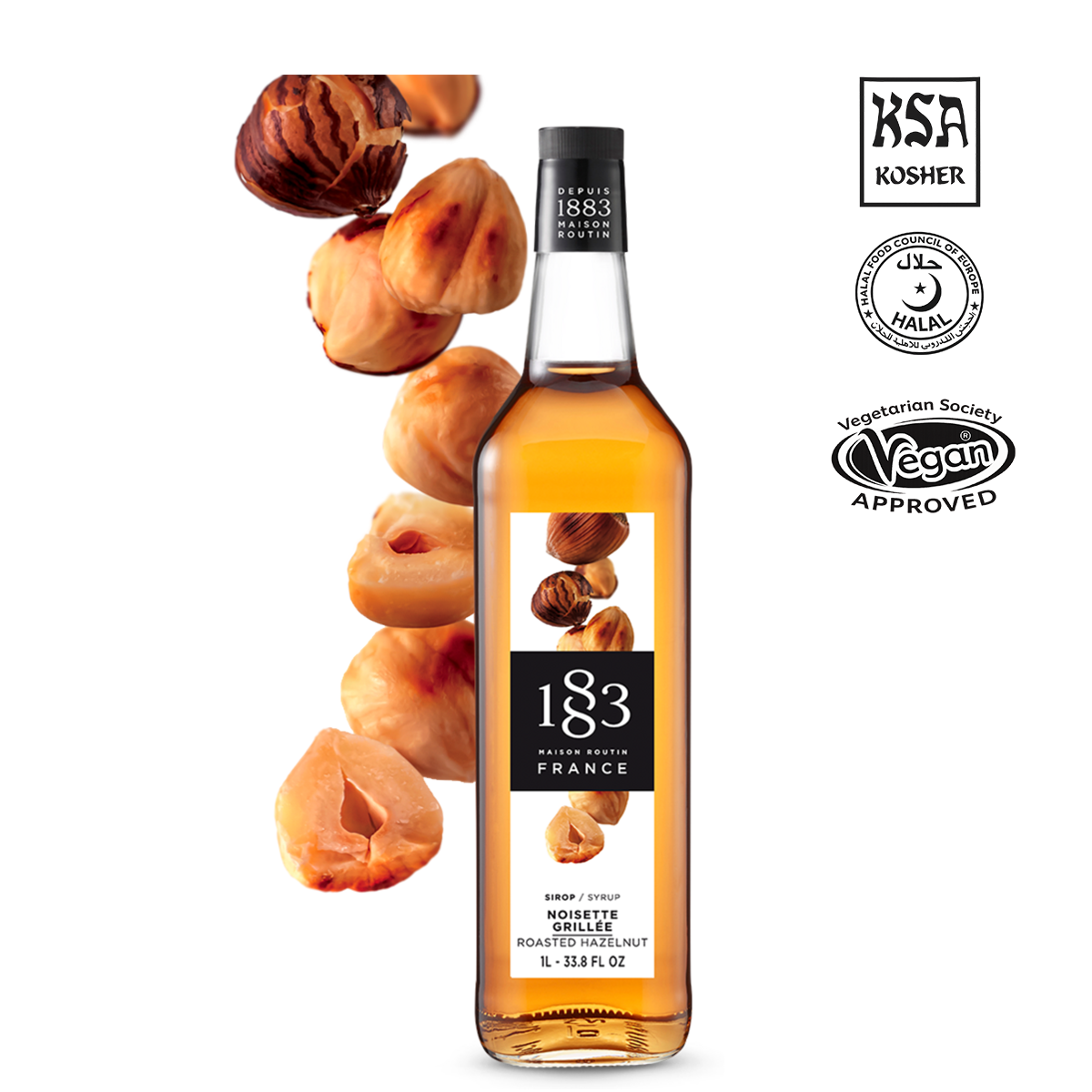 Cu delicioasa aromă a alunelor proaspăt prăjite, siropul Roasted Hazelnut 1883 are un gust ușor de alune prăjite, echilibrat perfect cu note de popcorn și cafea pentru un finisaj ușor afumat. Siropul Roasted Hazelnut 1883 este fabricat din ingrediente atent selecționate, incluzând zahăr de trestie natural și ingredientul nostru secret, apă pură din Alpii francezi.