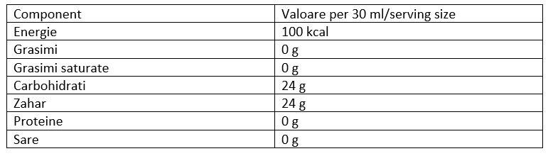 Ingrediente: zahăr de trestie 100%, apa, arome, colorant caramel.