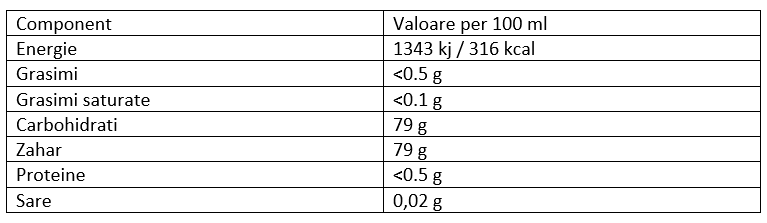 Ingrediente: zahar de trestie, apa, concentrat din suc de capsuni 13% ( 10% capsuni, soc), acidifiant acid citric, arome, colorant allura Red AC.