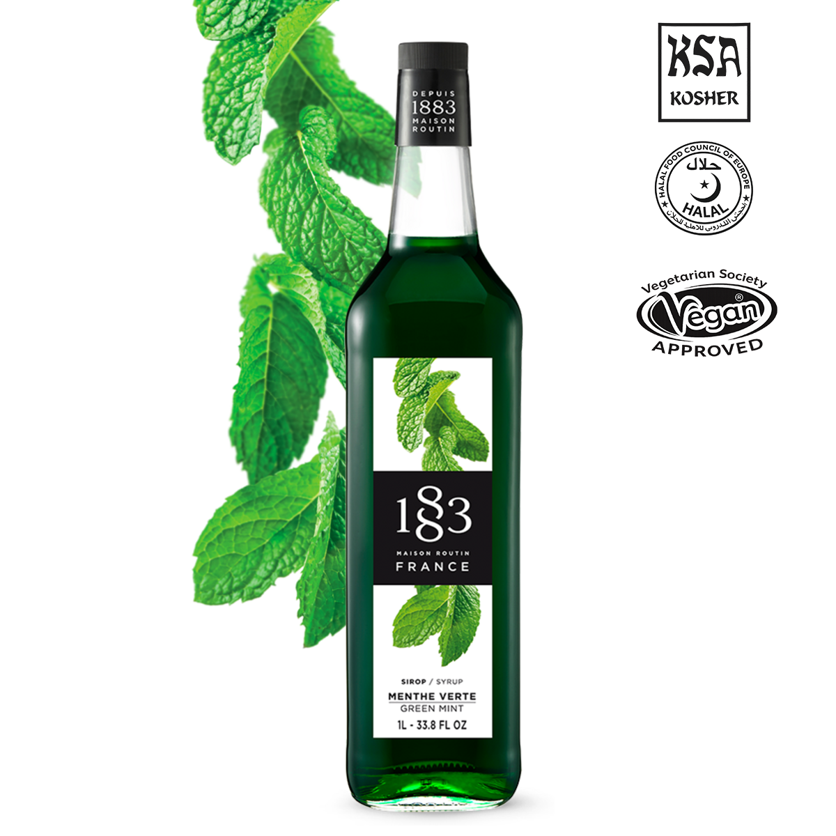 Cu o culoare verde smarald strălucitoare și întotdeauna plin de viață în orice utilizare, siropul de mentă 1883 are gustul puternic al mentolului, îndulcit de note subtile de clorofilă. Siropul de mentă 1883 este fabricat din ingrediente atent selecționate, inclusiv zahăr din trestie naturală și ingredientul nostru secret, apa pură alpină.