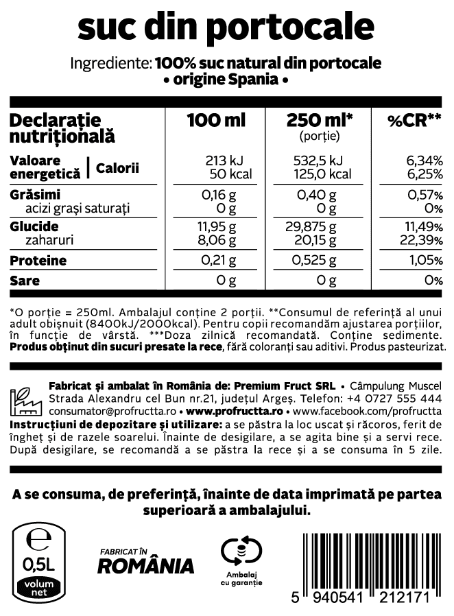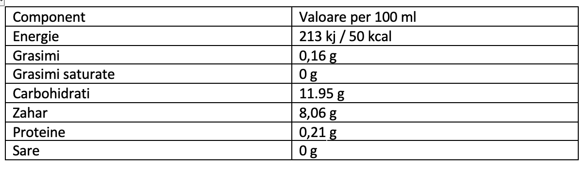 Ingrediente: 100% suc natural de portocale (origine Spania).